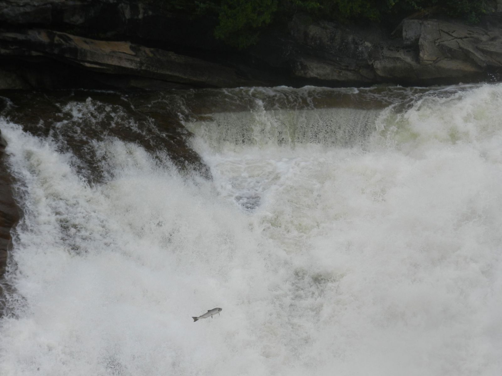 Venez relaxer sur le bord de la rivière en regardant les saumons sautés tout en admirant le magnifique paysage unique.